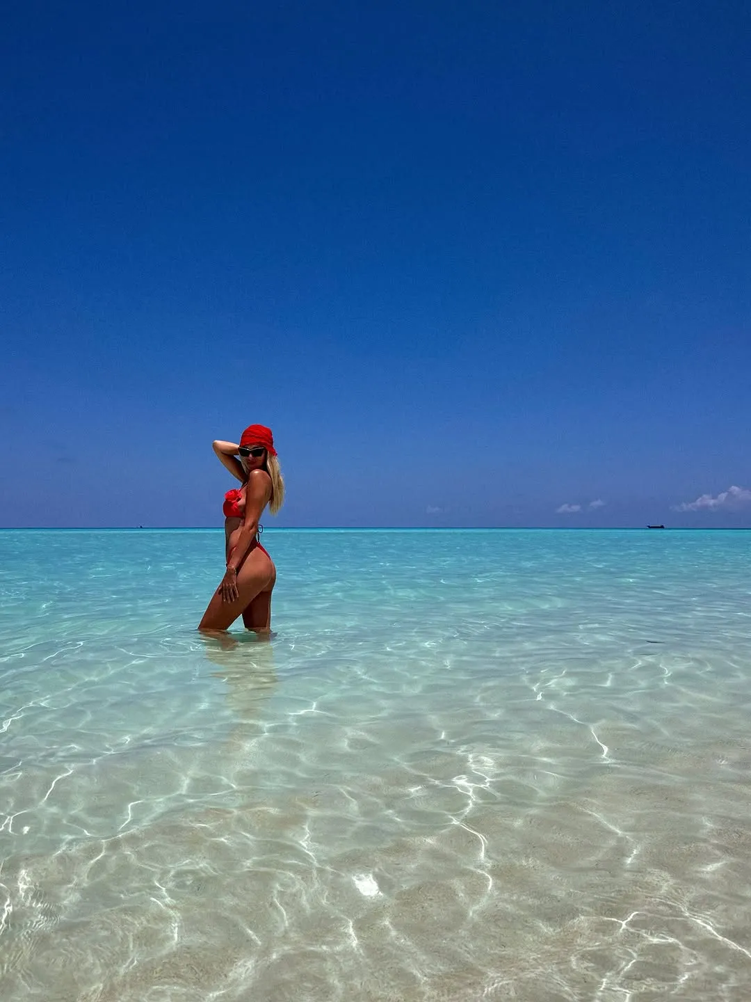 Клава остаётся верна себе: узнаваемый блонд, тонкая талия и сногсшибательный купальник, который подчёркивает красоту фигуры. В общем, звезда, как всегда, на высоте!