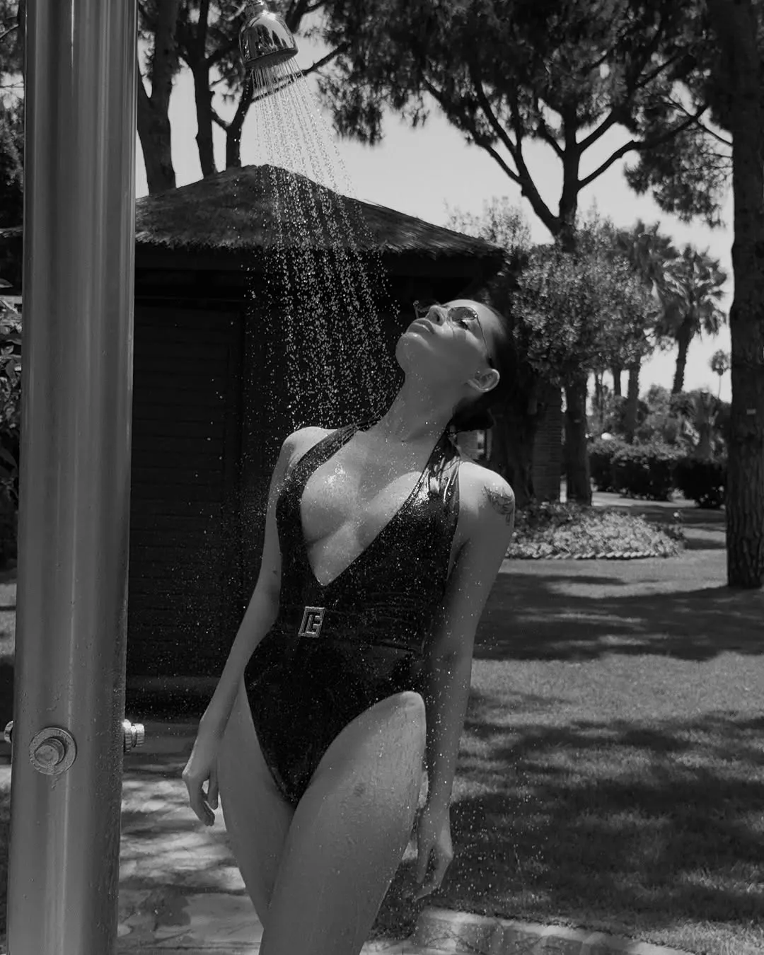Певица примерила купальник с эффектом «металлик» — игра света на такой ткани создаёт дополнительный объём. Уже который сезон подряд стильно!
