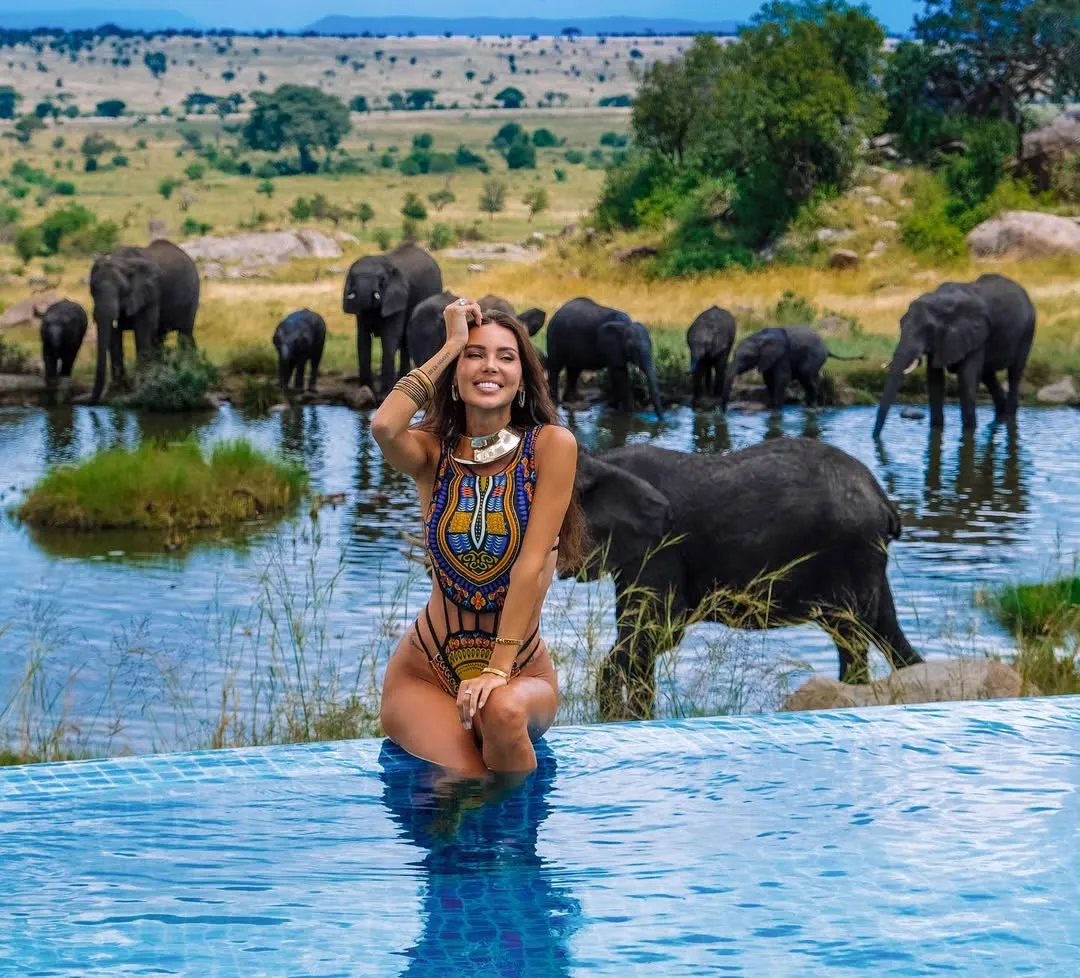 «Когда я это увидела своими глазами, я просто расплакалась. Я не знаю, насколько вам передается через экран телефона, но это просто невероятно. Это чудо — вот так плавать в бассейне и любоваться на слонов в дикой природе», — делилась многодетная мама.