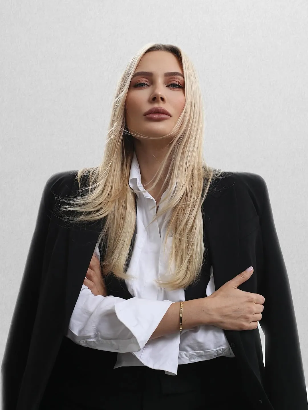 Приталенный пиджак, массивные украшения и красивая локация — Оксана словно сошла со страниц глянцевого журнала. Уверены, от этих кадров запереживали бы даже супермодели.