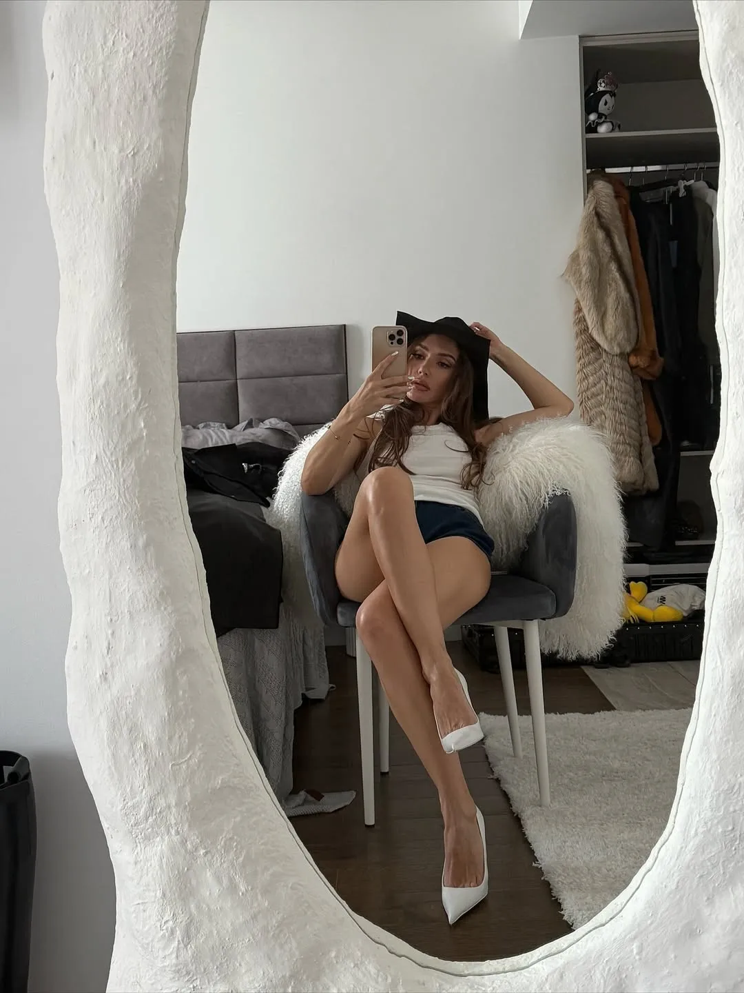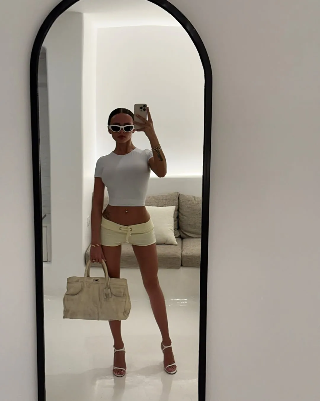 Загорелая Ханна устроила мастер-класс, как нужно правильно позировать перед зеркалом. Ножку чуть сгибаем, спинку выпрямляем, и, вуаля, ты красотка! Бери на заметку лайфхак певицы!